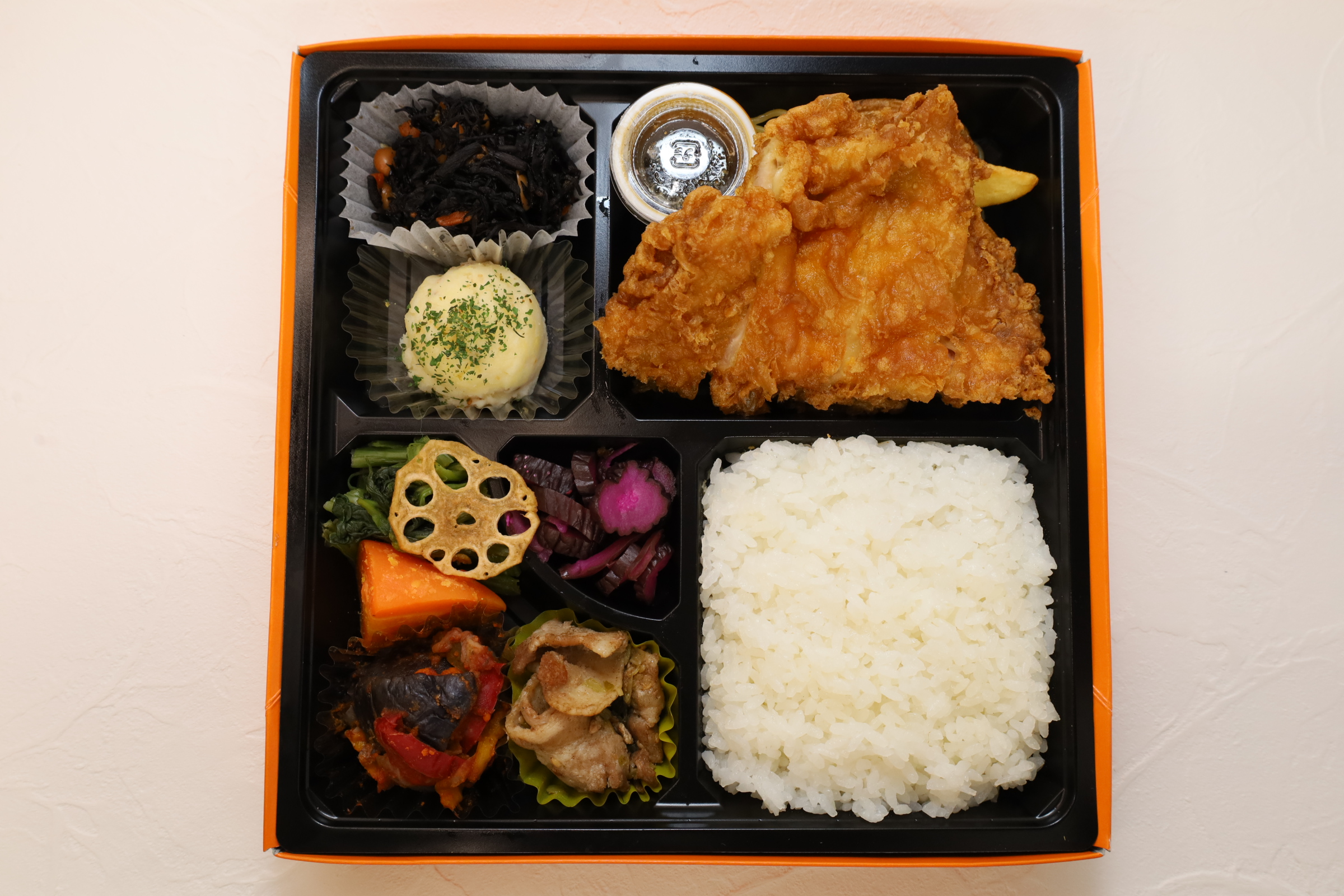 ひまわり風 油淋鶏豪華弁当 1,080円(税込) 大きな油淋鶏をメインにさまざまな副菜を詰め込みました。お肉はもちろん副菜もご飯もボリューミーに仕上げたお弁当です。 弁当内容 油淋鶏/ユーリンチーソース/スパゲティー/カポナータ/豚肉のねぎ塩焼き/ポテトサラダ/ひじきの煮物/ポテトフライ/ほうれん草のコンソメ煮/にんじんのグラッセ/お新香/白ご飯 ●付属品:割箸/おしぼり/楊枝●箱のサイズ:22.5cm×22.5cm×4cm 数量: - + お気に入りに追加 前のページに戻る