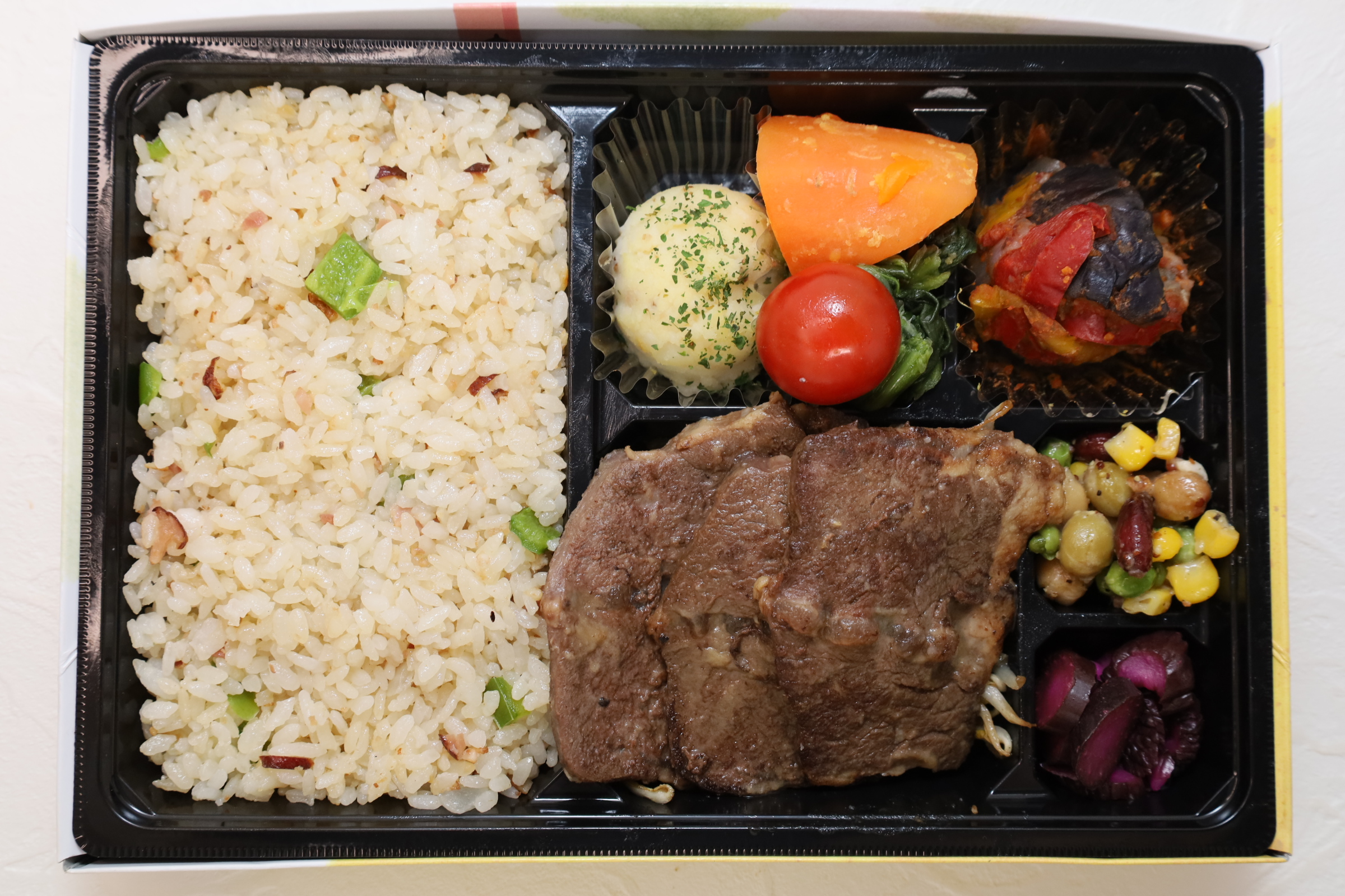 牛肉とピラフのコンビ豪華弁当 1,080円(税込) レモンでさっぱり仕上げたハラミと、人気のピラフを一緒にしました。併せてご賞味ください。 弁当内容 ハラミレモンステーキ/もやし/カポナータ/ほうれん草のコンソメ煮/ビーンズサラダ バジル風味/にんじんのグラッセ/ポテトサラダ/ミニトマト/お新香/ピラフ ●付属品:割箸/おしぼり/楊枝●箱のサイズ:22.5cm×22.5cm×4cm 数量: - + お気に入りに追加 前のページに戻る