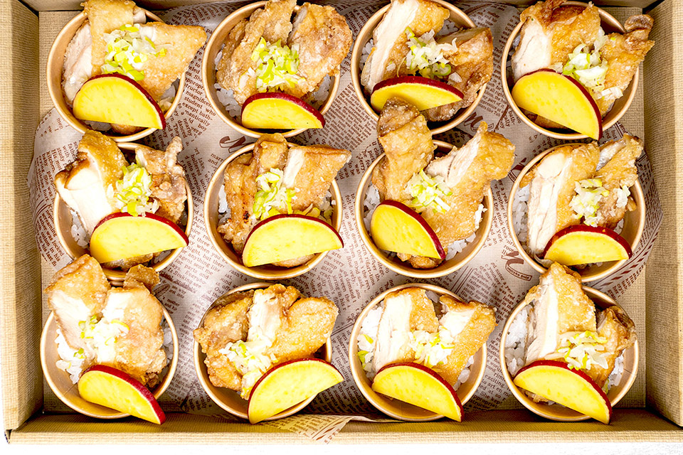 かぼちゃのカレーケチャップサラダ / 4種豆のデリサラダ / カップDEナポリタン / 【大皿】スモークサーモンのマリネ / 【大皿】ローストポーク / 【大皿】白身魚のフリッター サルサソースかけ / 【大皿】豚ロース肉のポークチョップ / 【大皿】ステーキハンバーグ(牛肉100%) / 【大皿】グリル・ド・チキン / 油淋鶏丼mini / 牛ハラミステーキ丼mini / フルーツカクテル